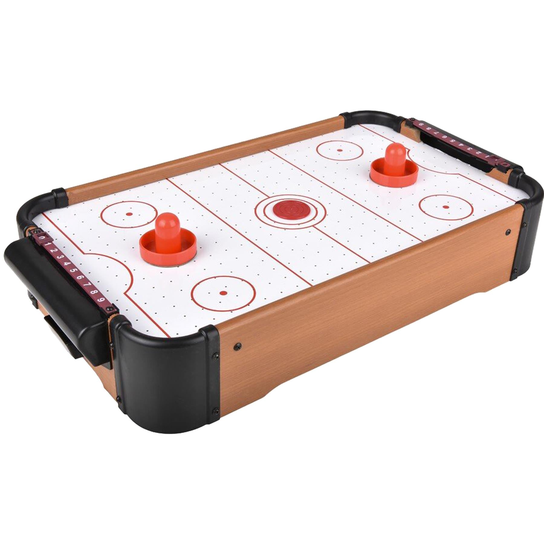 Experience fast-paced arcade fun right at home with our Tabletop Air Hockey Game, a compact but powerful mini version of the classic arcade favourite. Designed for families, kids, and anyone who loves friendly competition, this portable 55 × 31 cm (approx) air hockey table delivers exciting gameplay in any room. Powered by 3 AA batteries not included), the built-in motor generates strong, smooth airflow so the puck glides effortlessly across the surface, creating that authentic air hockey feel. The durable MDF frame and premium wood-style finish add strength, stability, and a stylish touch, making it perfect for living rooms, bedrooms, offices, and games rooms. Each set includes 2 pushers and 2 pucks, so you’re ready to play straight out of the box. Lightweight and fully portable, it’s ideal for family game nights, parties, sleepovers, or as a fun break during the day. Whether you're looking for a birthday gift, Christmas present, or a new addition to your family games collection, this tabletop air hockey game set guarantees hours of competitive entertainment for kids aged 5+ and adults alike. Bring the arcade home anytime, anywhere with our Tabletop Air Hockey Game!