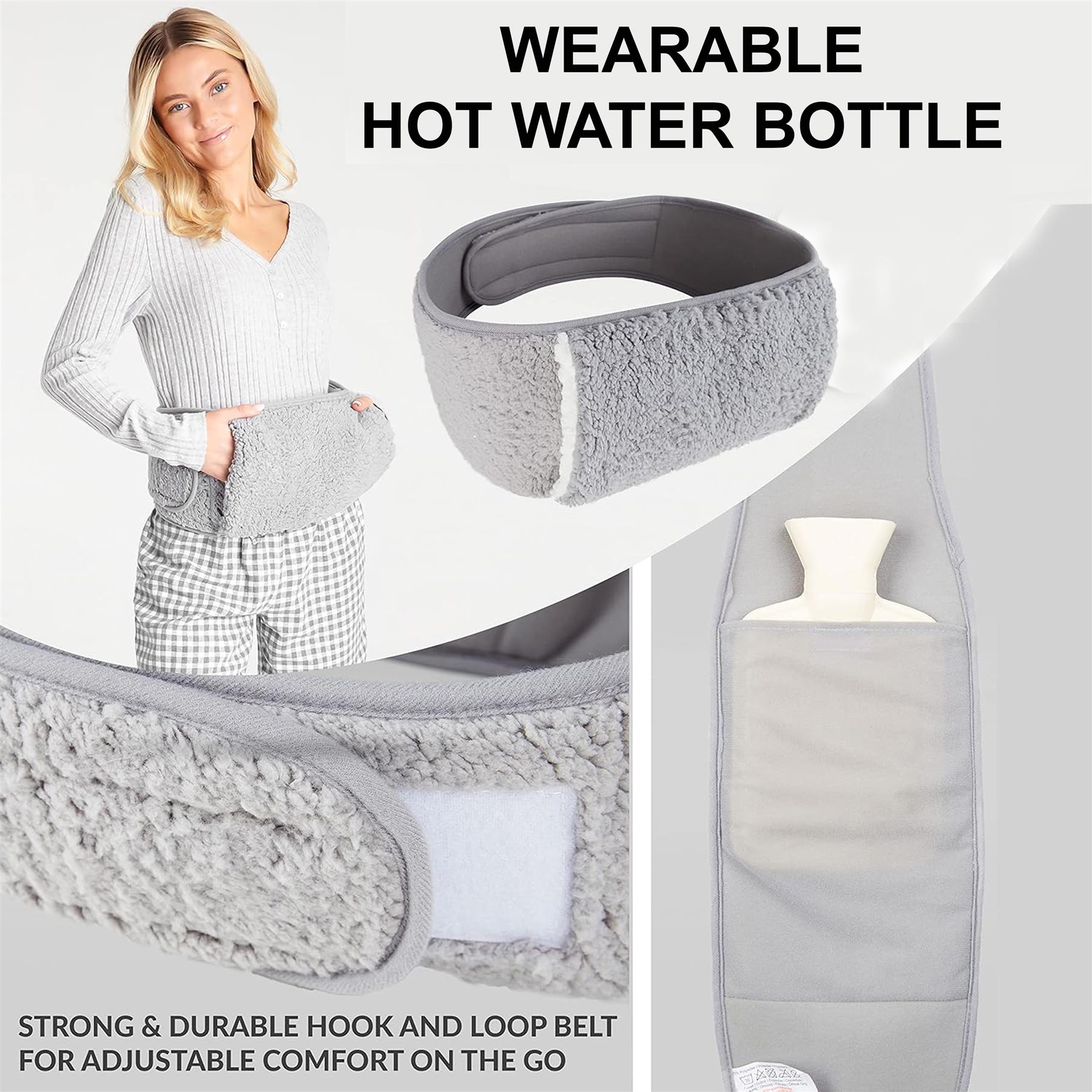 1L Wearable Hot Water Bottle Cover Adjustable Belt Wrap Around Luxury Sherpa