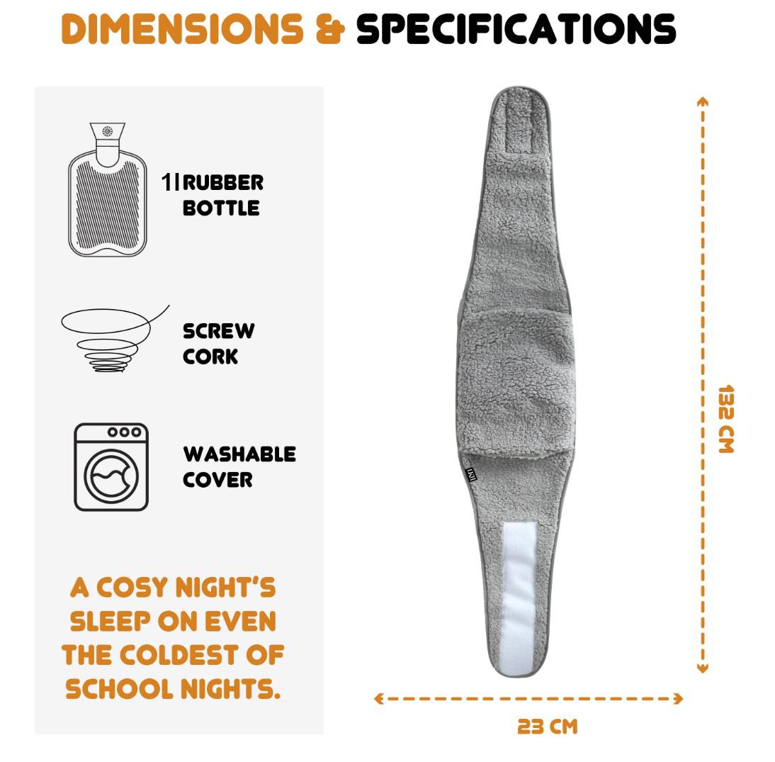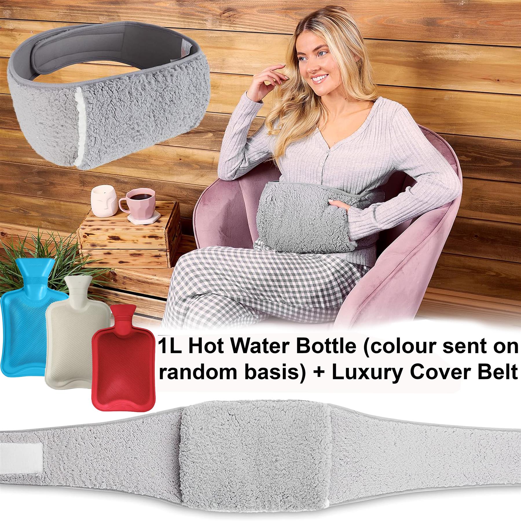 Experience comforting warmth without limits with this wrap-around hot water bottle belt, designed for hands-free relief, everyday comfort and cosy self-care. Unlike traditional hot water bottles, this wearable design allows you to enjoy soothing heat while working, relaxing or moving around the house- no holding required. The soft, adjustable waist pouch is crafted with luxury sherpa material and hand-warming pocket, creating a cocoon of warmth exactly where your body needs it most. The secure loop closure ensures a comfortable, personalised fit, making it ideal for extended use during cold days or painful flare-ups. This hot water bottle is specially designed to provide targeted relief for back pain, menstrual cramps, muscle tension, IBS discomfort and endometriosis, using gentle heat therapy to relax muscles and ease aches naturally. Simply fill the 1-litre natural rubber bottle up to two-thirds with hot water (below 80°C), secure it in the removable cover and position it against the affected area for deep, calming warmth. Rubber hot water bottle is available in three colours, one sent on random basis. Safety and quality come first. Manufactured from premium natural rubber and certified to high safety standards, this hot water bottle offers dependable heat retention and leak-resistant performance, giving you complete peace of mind with every use. Stylish, practical and deeply comforting, this hot water bottle belt makes a thoughtful gift for women or teens- perfect for Christmas, birthdays, Secret Santa or as a caring self-care essential. Whether you’re soothing pain or simply staying warm, this wearable hot water bottle delivers comfort you can feel and trust.