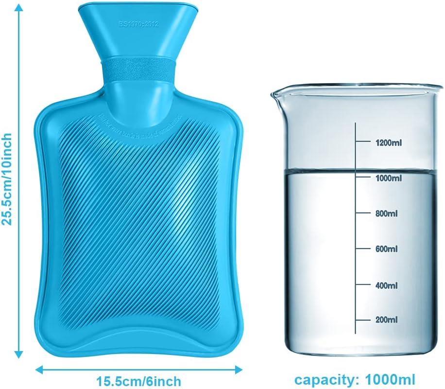 Hot Water Bottle 1L Large Capacity Natural Rubber Hand Feet Warmer for Back Pain Neck Shoulder Period Cramps Pain Relief Secure & Leakproof Heating Pads