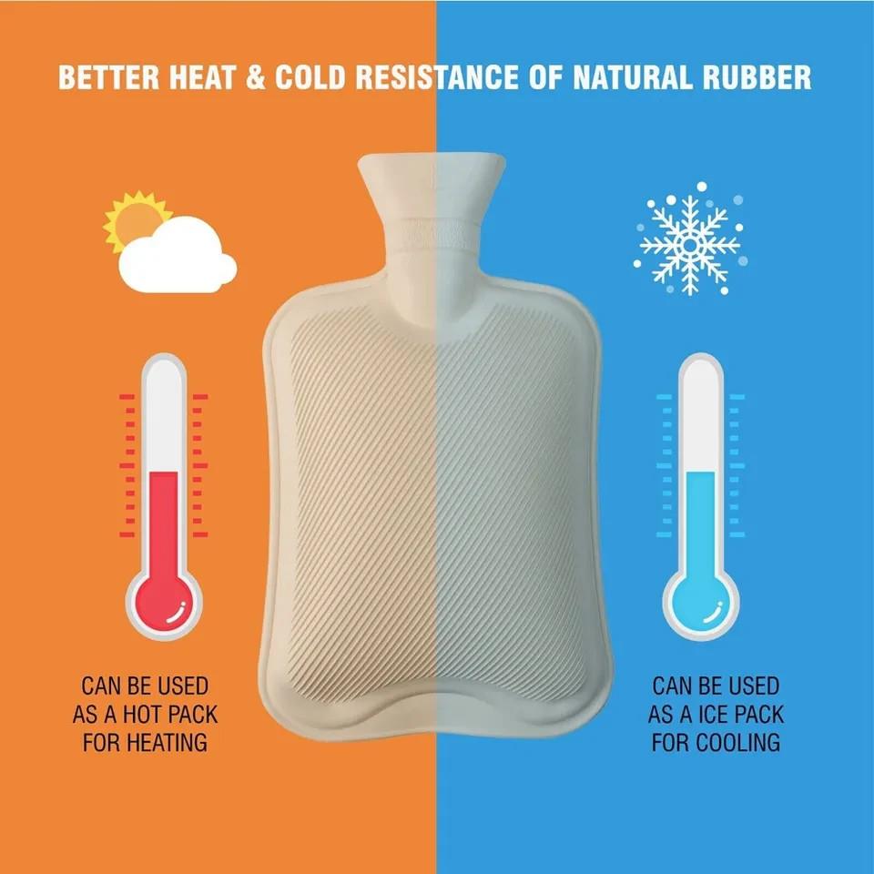1L Hot Water Bottle Natural Rubber Winter Hand Feet Warmer Large Cold Nights