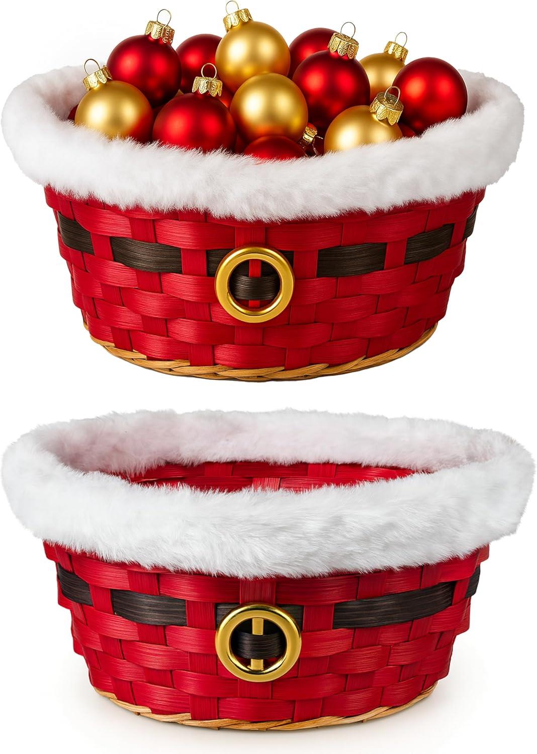 2 PACK FESTIVE SANTA-INSPIRED DESIGN – Each charming red woven bamboo basket features soft white faux fur trim and a shiny gold buckle, perfectly capturing Santa’s classic belt style for an instant Christmas touch.